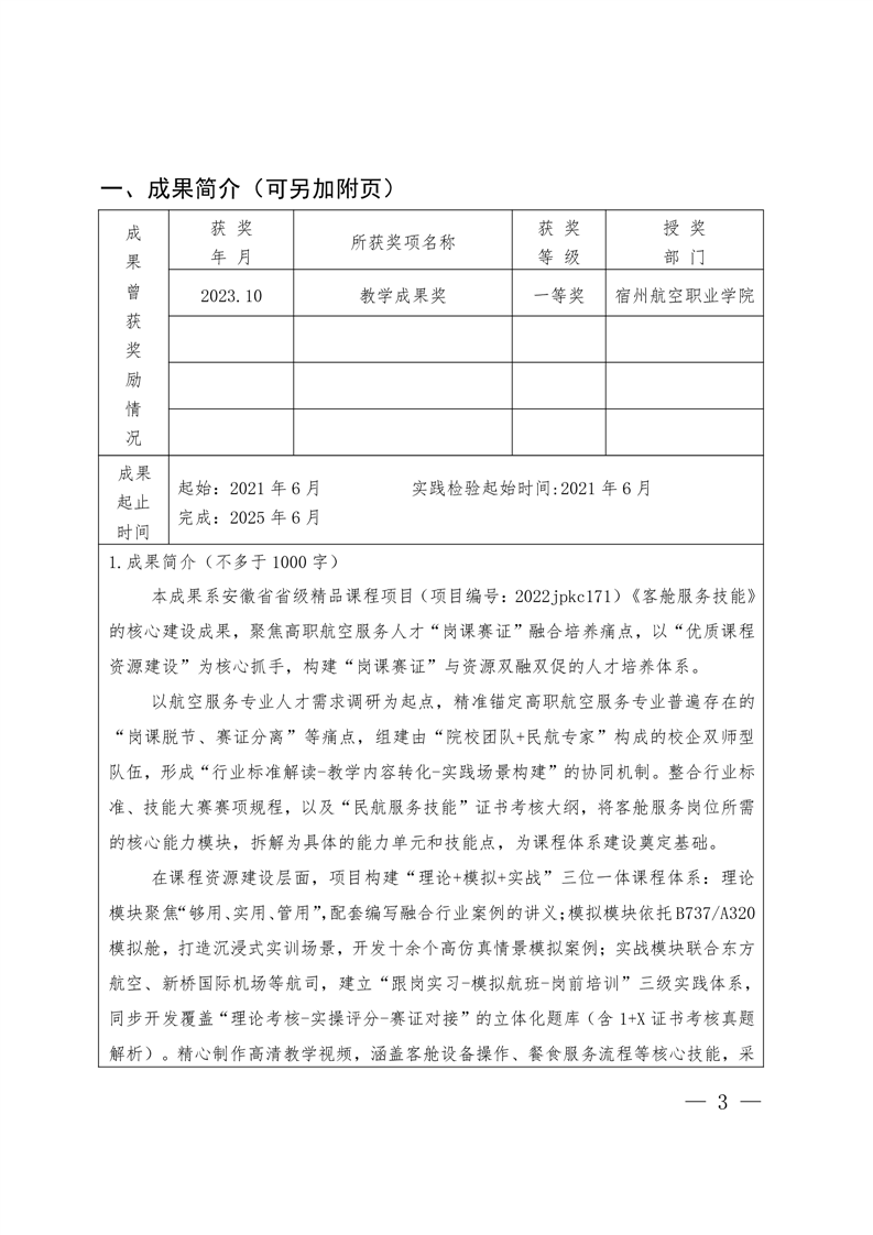 “岗课赛证”与资源双融双促,客舱服务技能优质教学资源建设与航空服务人才培养的探索与实践教学成果申报书