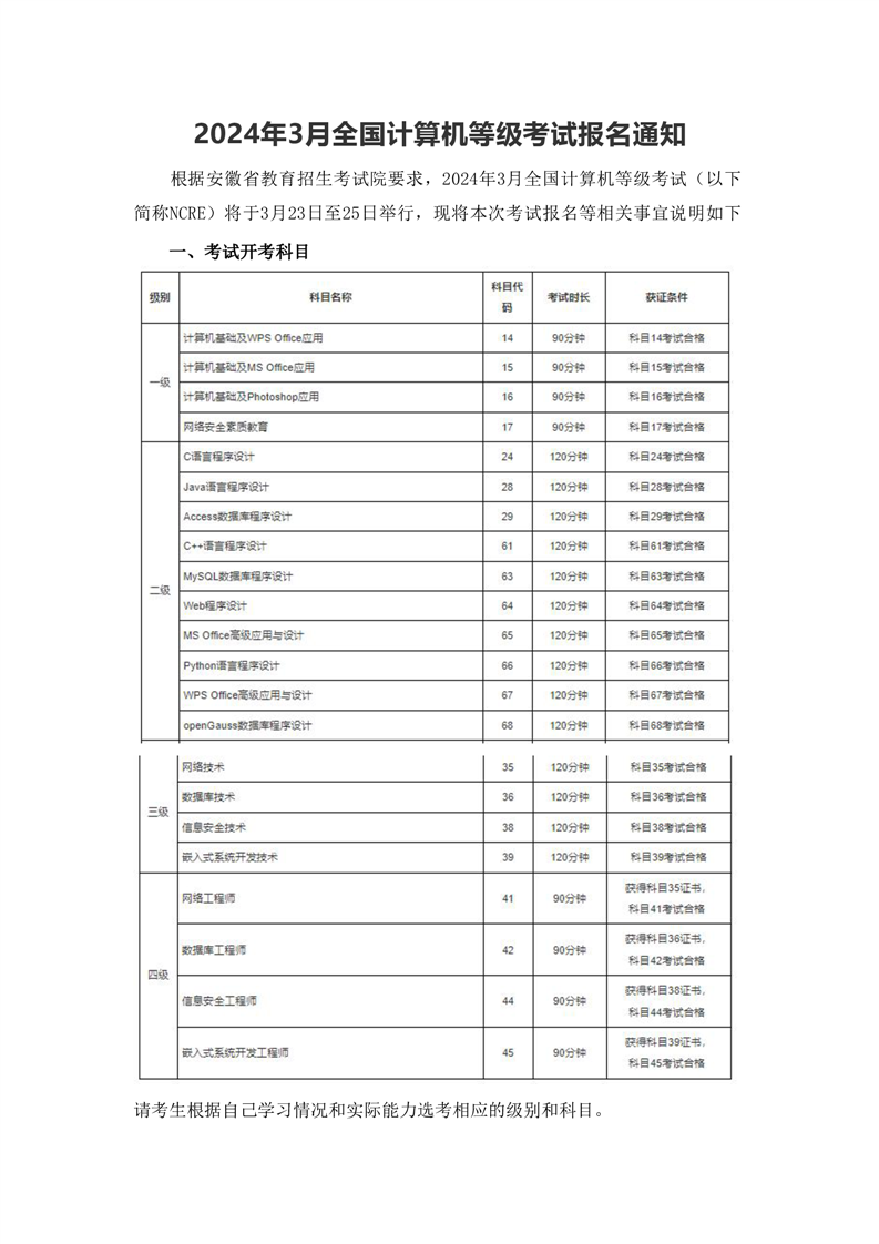 彩神Vll学院2024年3月全国计算机等级考试报名通知