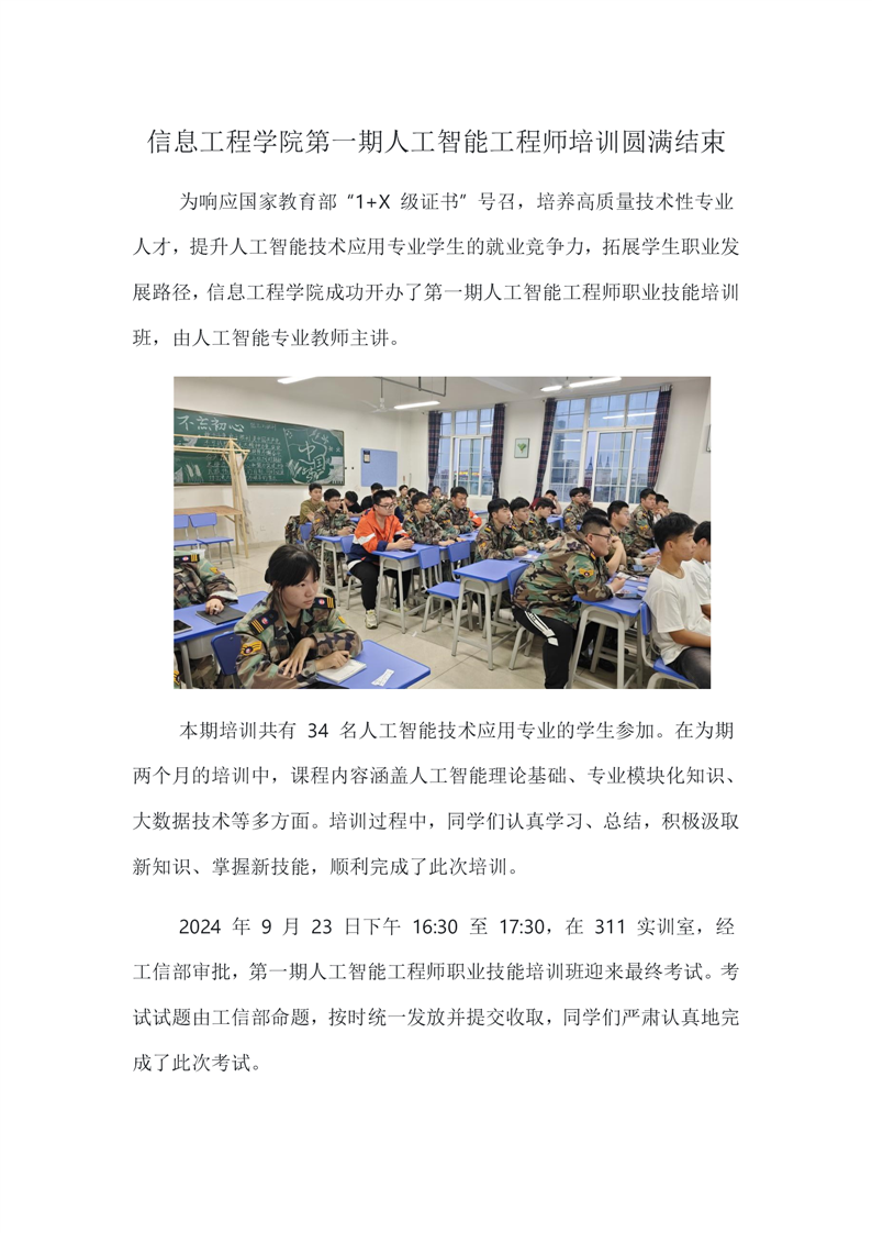 信息工程学院第一期人工智能工程师培训圆满结束