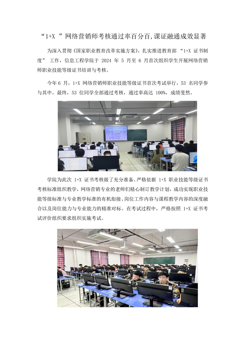 “1+X ”网络营销师考核通过率百分百,课证融通成效显著