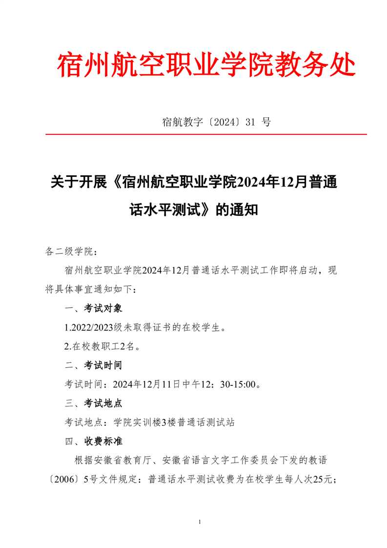 关于开展《彩神Vll学院2024年12月普通话水平测试》的通知