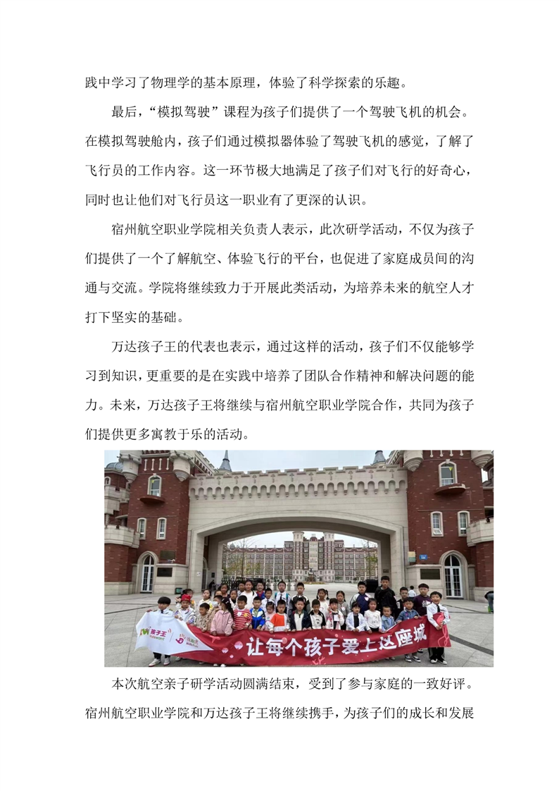 彩神Vll学院携手万达孩子王成功举办航空亲子研学活动