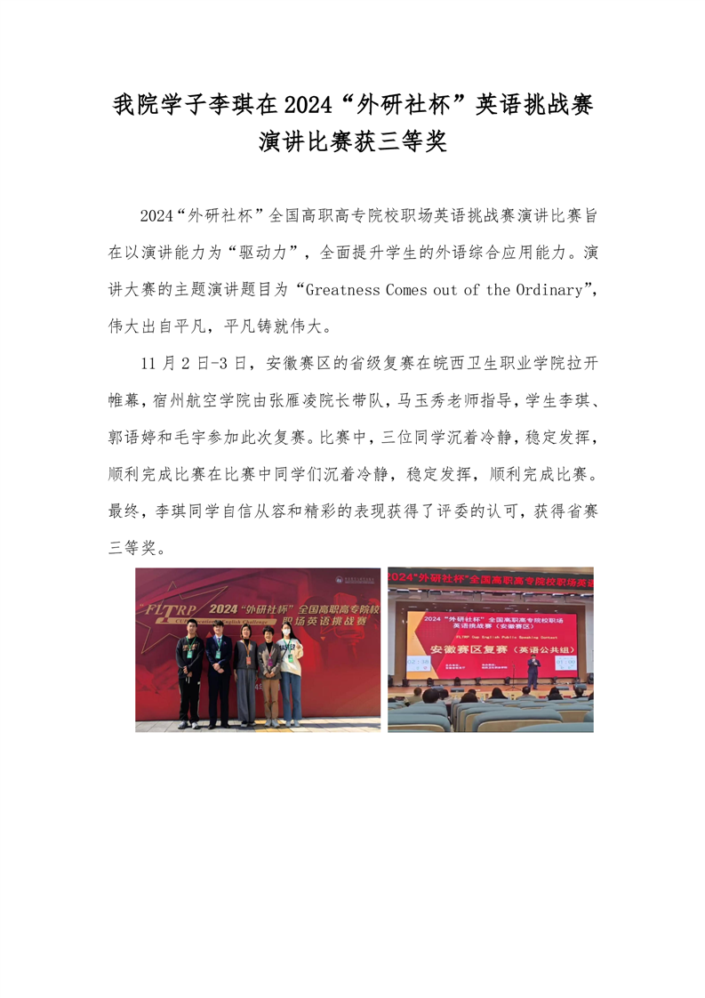 2024“外研社杯”英语挑战赛演讲比赛获奖