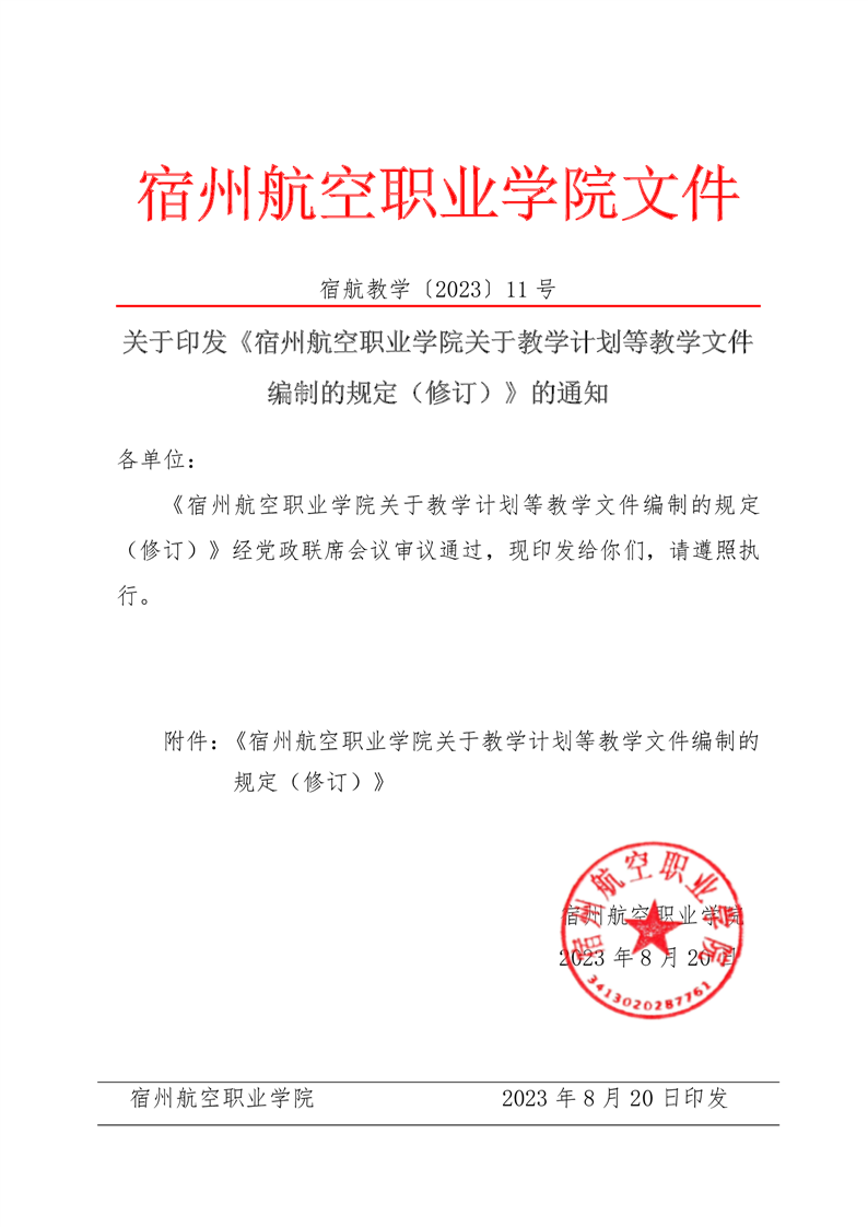 关于印发《彩神Vll学院关于教学计划等教学文件编制的规定(修订)》的通知
