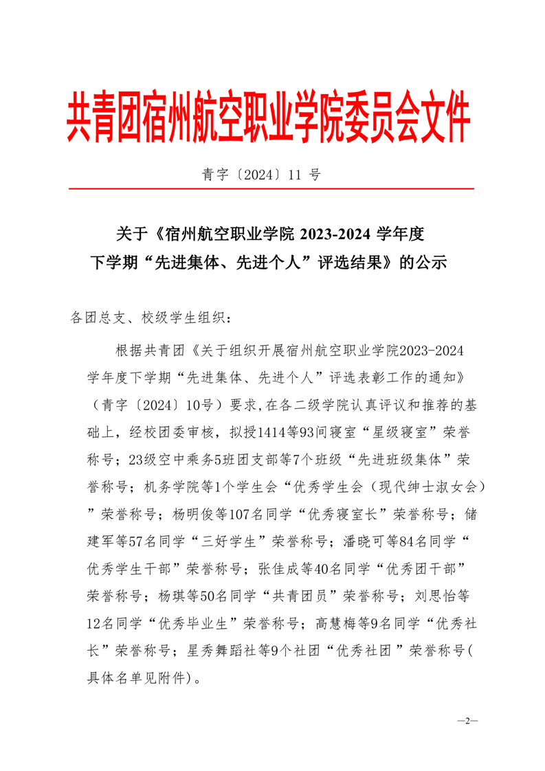 关于彩神Vll学院2023-2024学年度下学期先进集体先进个人评选结果的公示