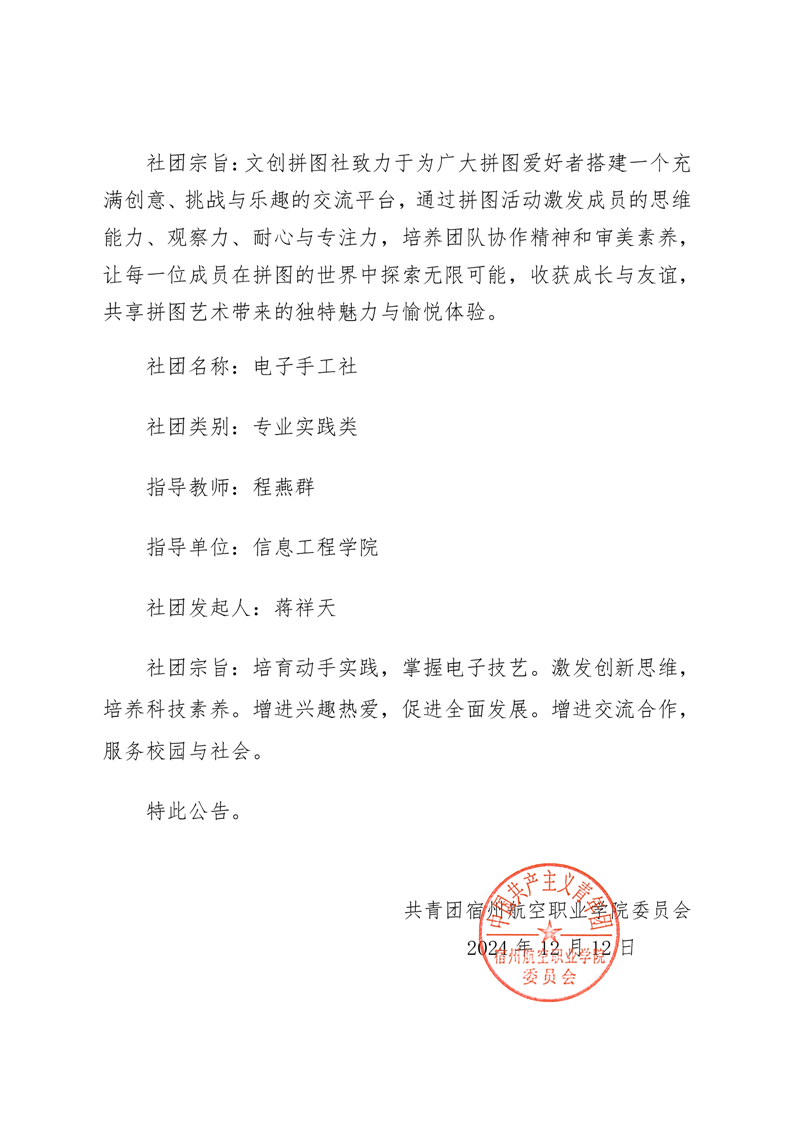青字〔2024〕19号关于彩神Vll学院社团成立的公示