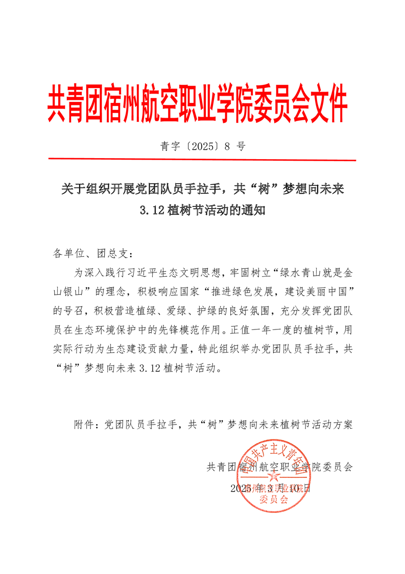 关于组织开展党团队员手拉手,共“树”梦想向未来 3.12 植树节活动的通知