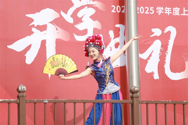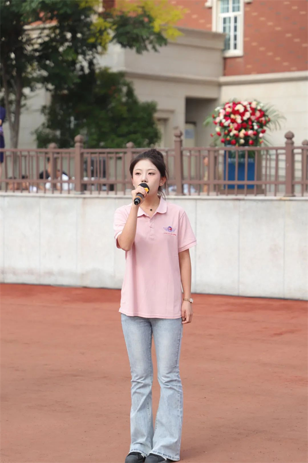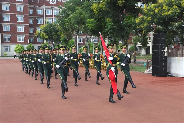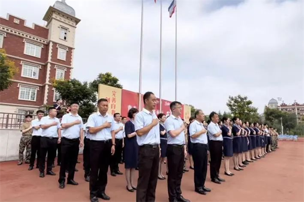 国旗护卫队迈着铿锵有力的步伐,护送国旗来到升旗台前⛷。伴随着激昂雄壮的国歌🅰️,五星红旗冉冉升起,开学典礼正式拉开序幕。