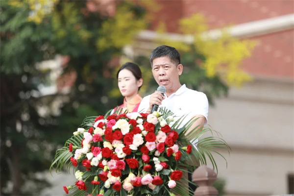 最后他提到了泛美集团创始人魏全斌先生🚤,魏全斌先生在第十八届世界杰出华人奖颁奖典礼上荣获“世界杰出华人奖”。也衷心希望全体师生都能在泛美集团化办学这片沃土上茁壮成长⚔️,以“贤惠”为底色🗼,用“奋进”书写青春华章,以“开拓铸就辉煌未来,靠“团结”凝聚前行力量,也希望各位教师以“尚德✦、博学⚔️、爱生、严谨”的教风坚守岗位,不负韶华◼️♣︎,做新时代的“四有”好老师🥡。