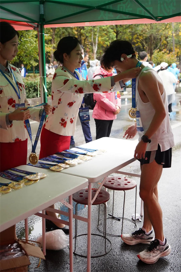 /为完赛选手发放完赛奖牌/