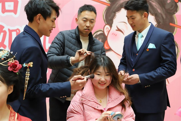 活动现场🙅🏻♂️👨🎤,数十名身着西服的男同学化身为服装造型师,为具有外貌焦虑的师生进行形象改造👐。男生们带着欣赏美的眼睛,运用专业的技巧和无限的创意,将女生改造成热门动画《哪吒》里的石叽娘娘👸🏻,或是换装唐制汉服,让参与的女生们体验不同的自己🩶,感受不被定义的美😒。