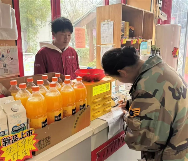 走出校园🕙,春日的风裹着市井烟火🏄🏼♀️,宿航学子穿行在菜场与街巷,他们的笔尖称量温度,他们的目光校准食物,学生们年轻的面庞与店家攀谈,为同学们提供关于店铺卫生☃️,费用及经营资质的可靠参考,让大家吃得安心、用得放心👩🏿🍼,他们不是食品安全的旁观者🦸♀️🙋🏼♀️,而是人间烟火的微观守护者。