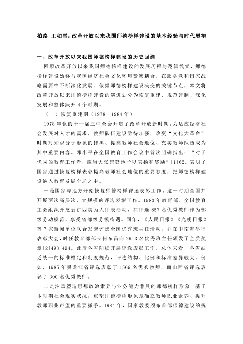 柏路 王如雪:改革开放以来我国师德榜样建设的基本经验与时代展望