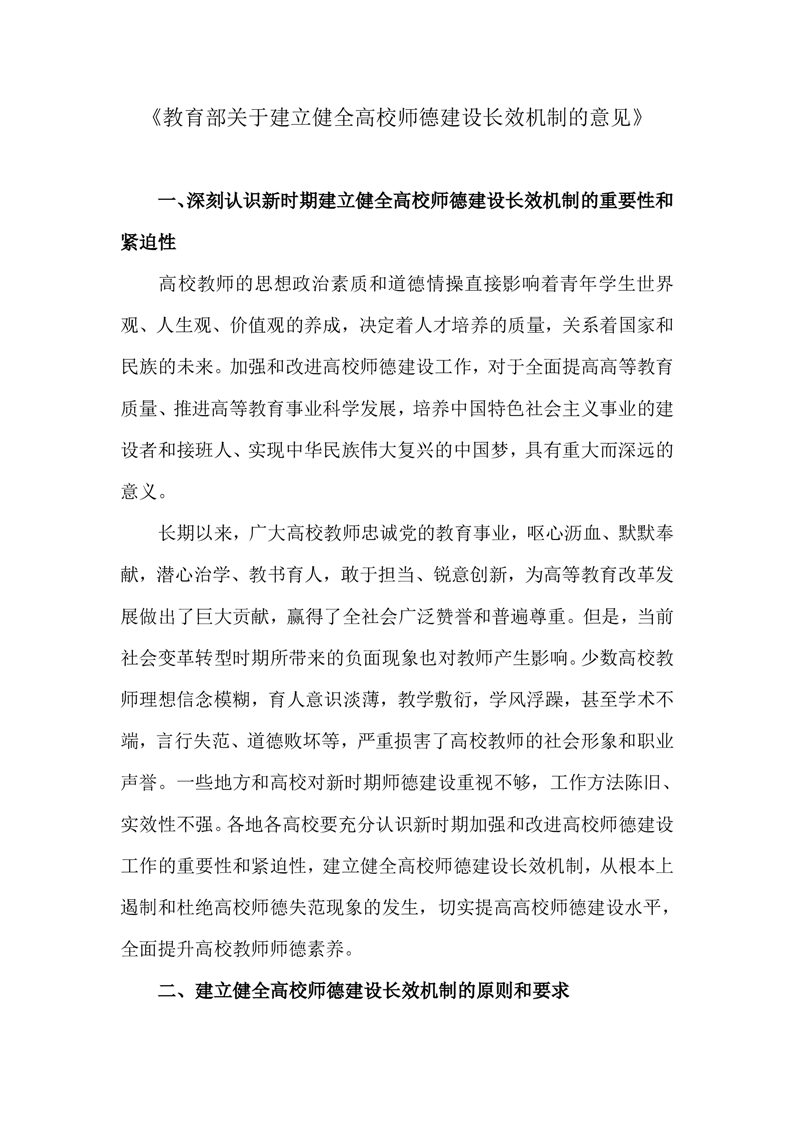《教育部关于建立健全高校师德建设长效机制的意见》