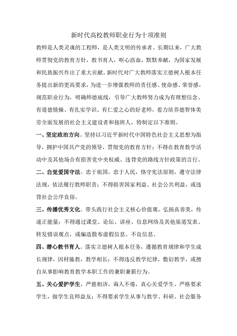 《新时代高校教师职业行为十项准则》