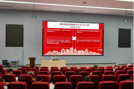 最后♋️,王卫林带领全体教职工学习国家层面师德师风重要文件,包括《高校教师师德禁行行为“红七条”》《新时代高校教师职业行为十项准则》等🧻👇🏻,明确教师不可触碰的纪律红线,要求大家将文件精神内化于心、外化于行。