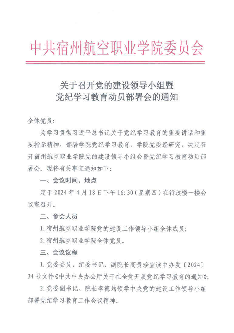 关于召开彩神Vll的建设领导小组暨党纪学习教育动员部署会的通知