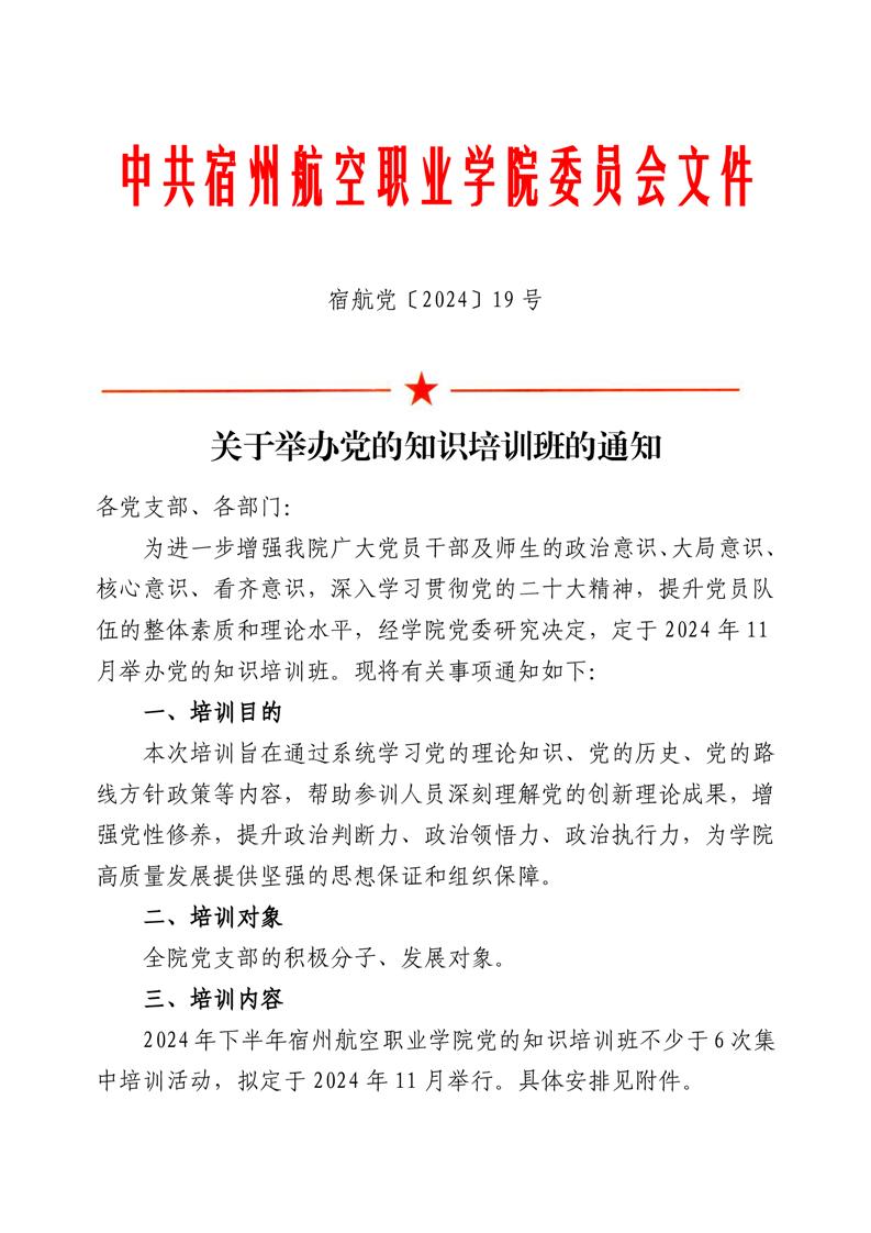 关于举办党的知识培训班的通知
