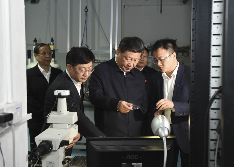 这是4月26日下午,习近平在中国科技大学近代物理系自旋磁共振实验室了解科研情况。新华社记者李学仁摄