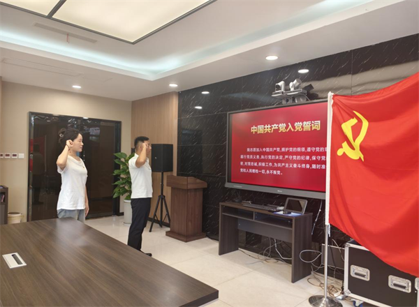 会议第一项——预备党员转正大会在庄严的奏唱《国歌》中拉开序幕💅🏽。首先,婷同志宣读了入党申请书✩,申请转为中共正式党员🚞🤾🏽。解伟同志和关振东同志分别介绍了严雨婷同志的基本情况及其在预备党员期间的表现©️,并同意其按期转正。随后🖲,有表决权的党员进行了举手表决,一致同意严雨婷同志的转正申请。支部书记解伟同志宣读通过严雨婷同志按期转正决议。关振东同志带领严雨婷同志及与会党员面向党旗,庄严宣誓🦶🏻。此次宣誓仪式进一步增强了党员的党性观念和使命感。