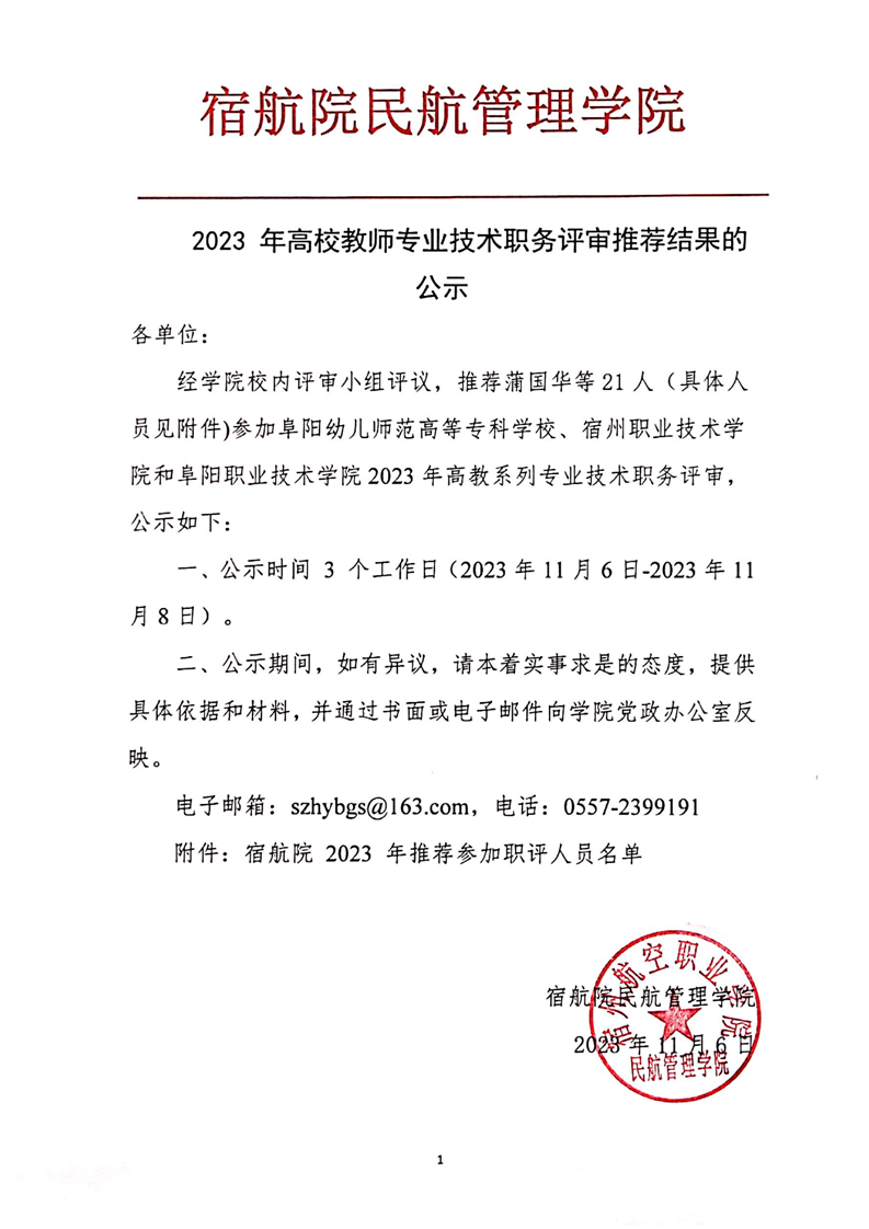宿航院民航管理学院2023年高校教师专业技术职务评审推荐结果的公示