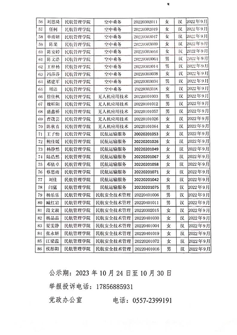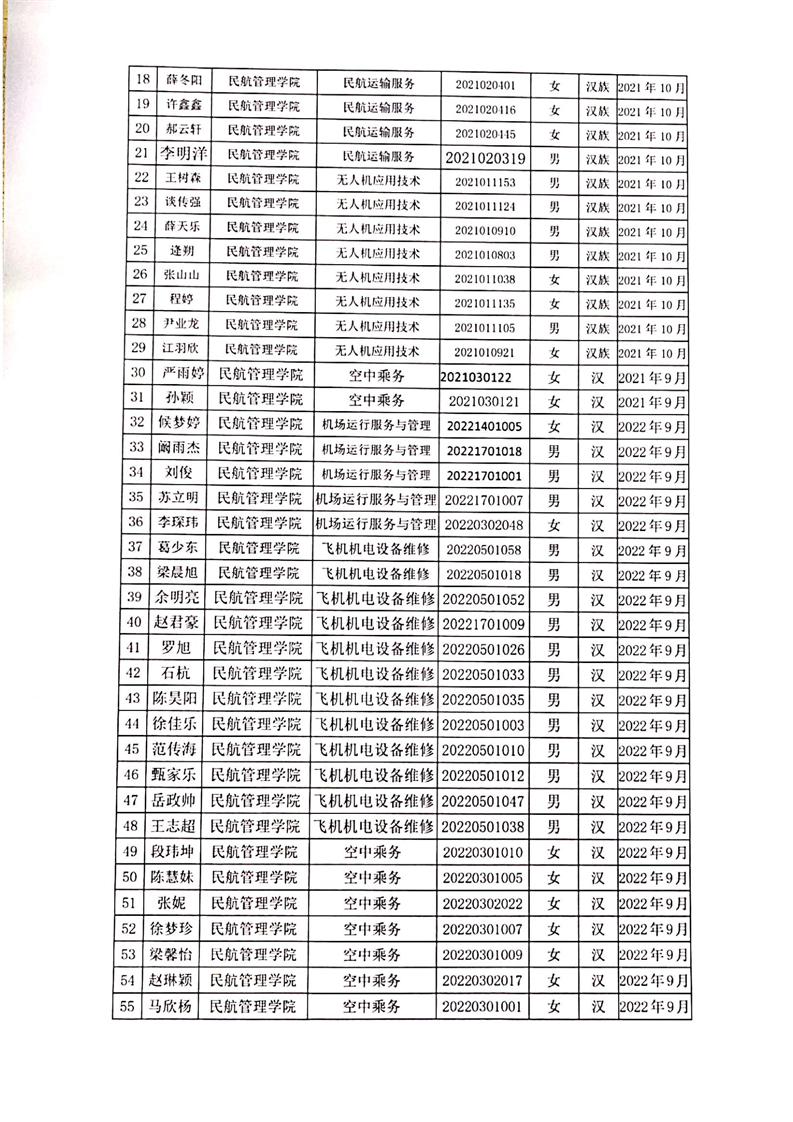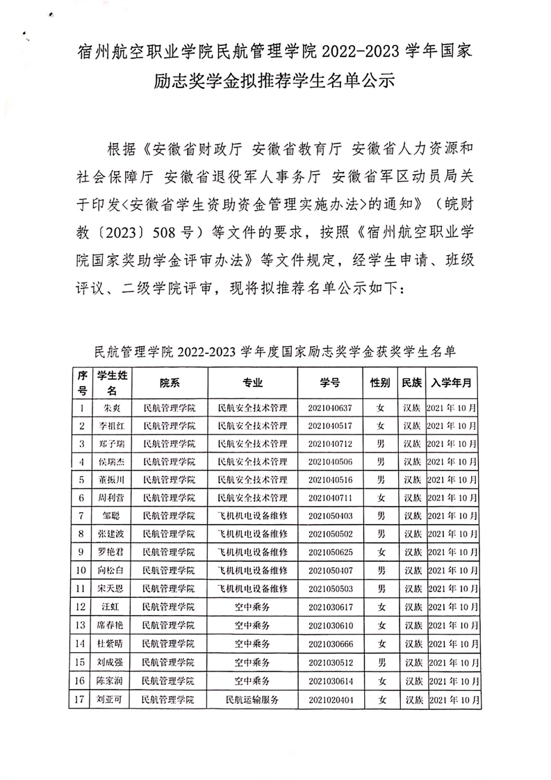 彩神Vll学院民航管理学院2022-2023学年国家励志奖学金拟推荐学生名单公示
