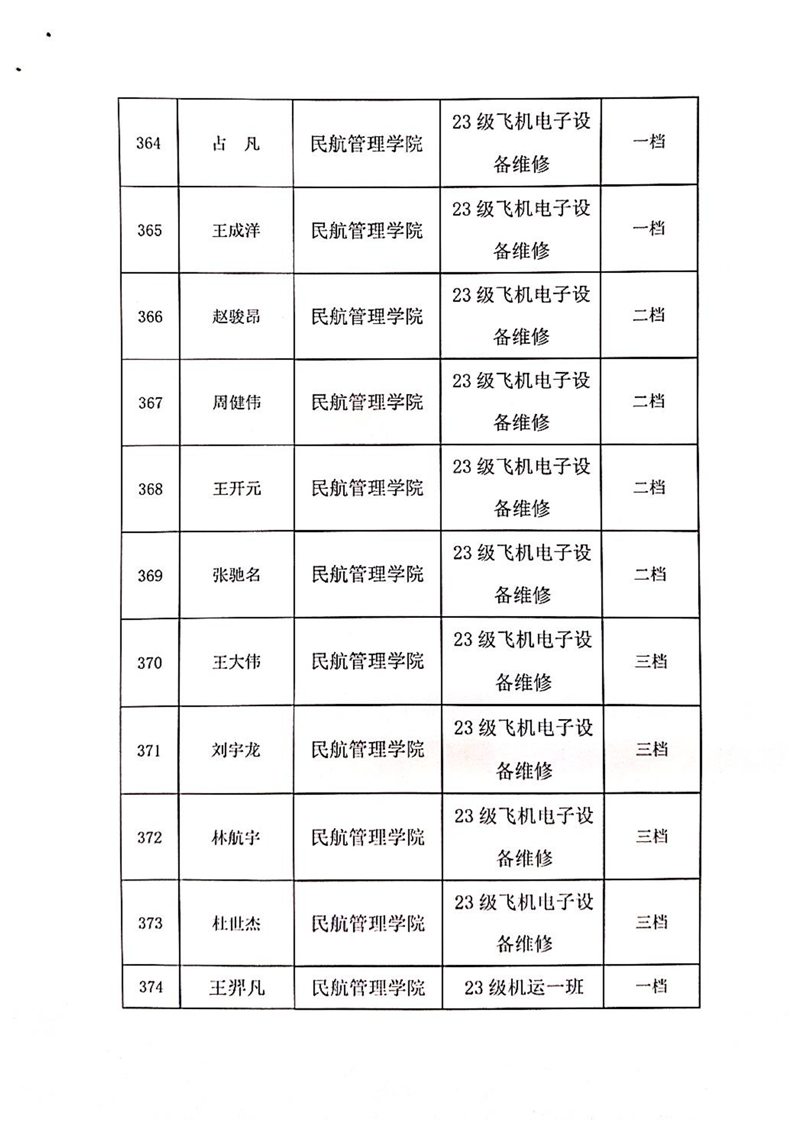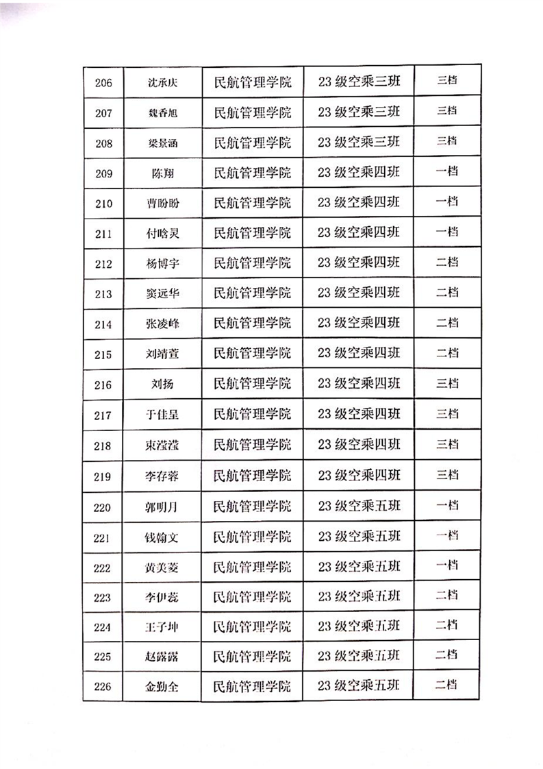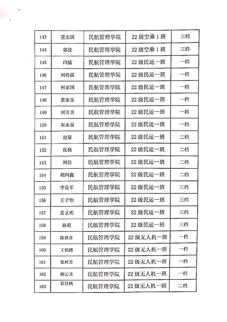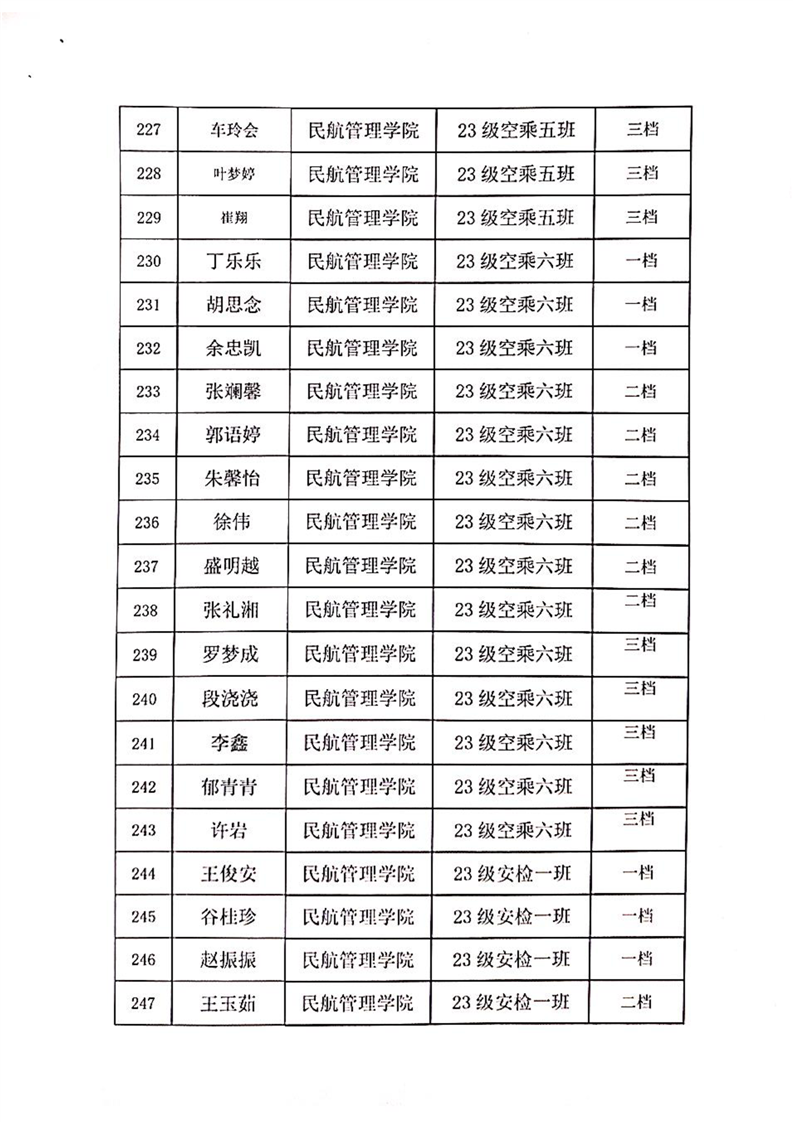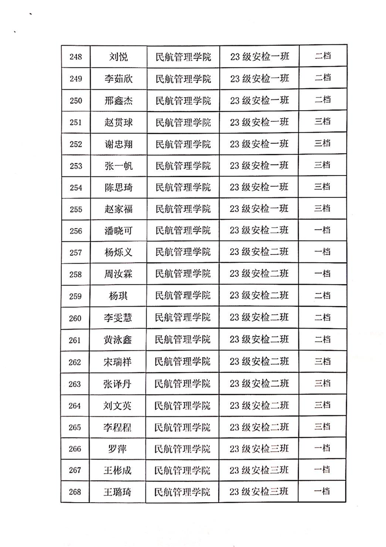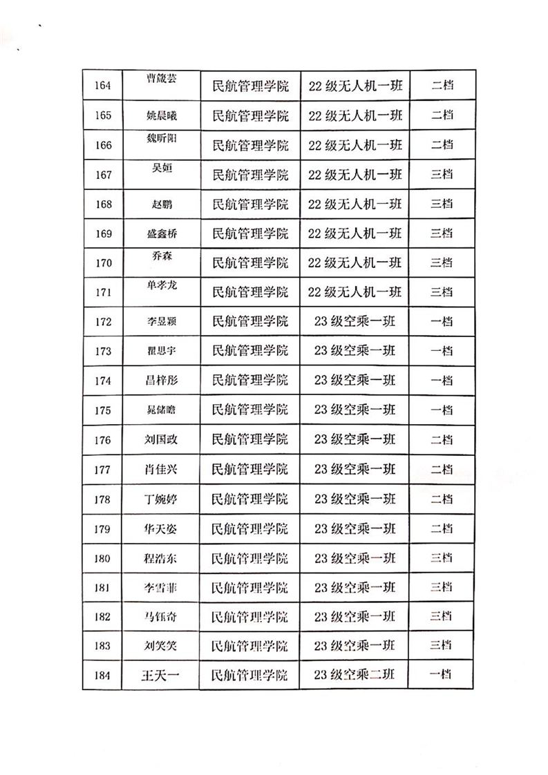 民航管理学院关于2023-2024学年度国家助学金拟获学生名单的公示