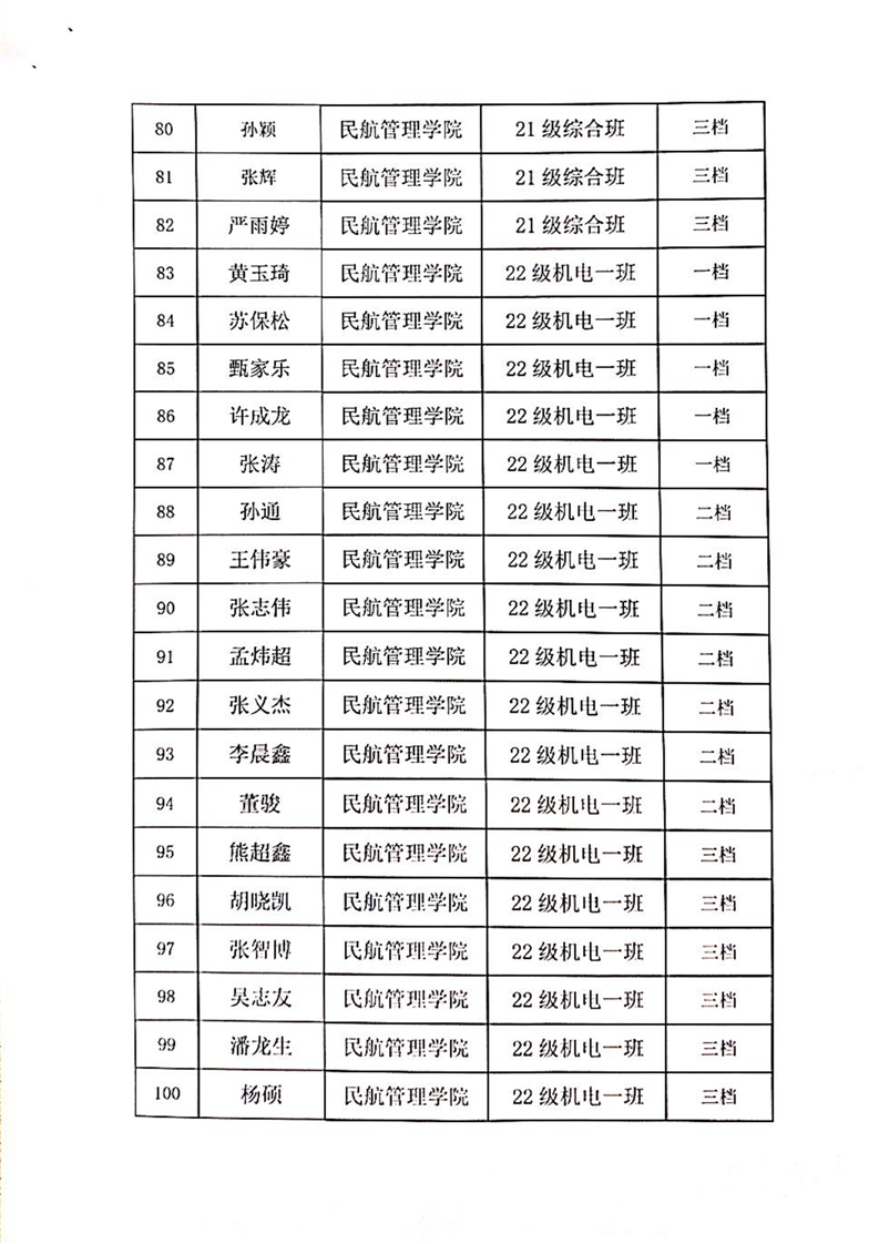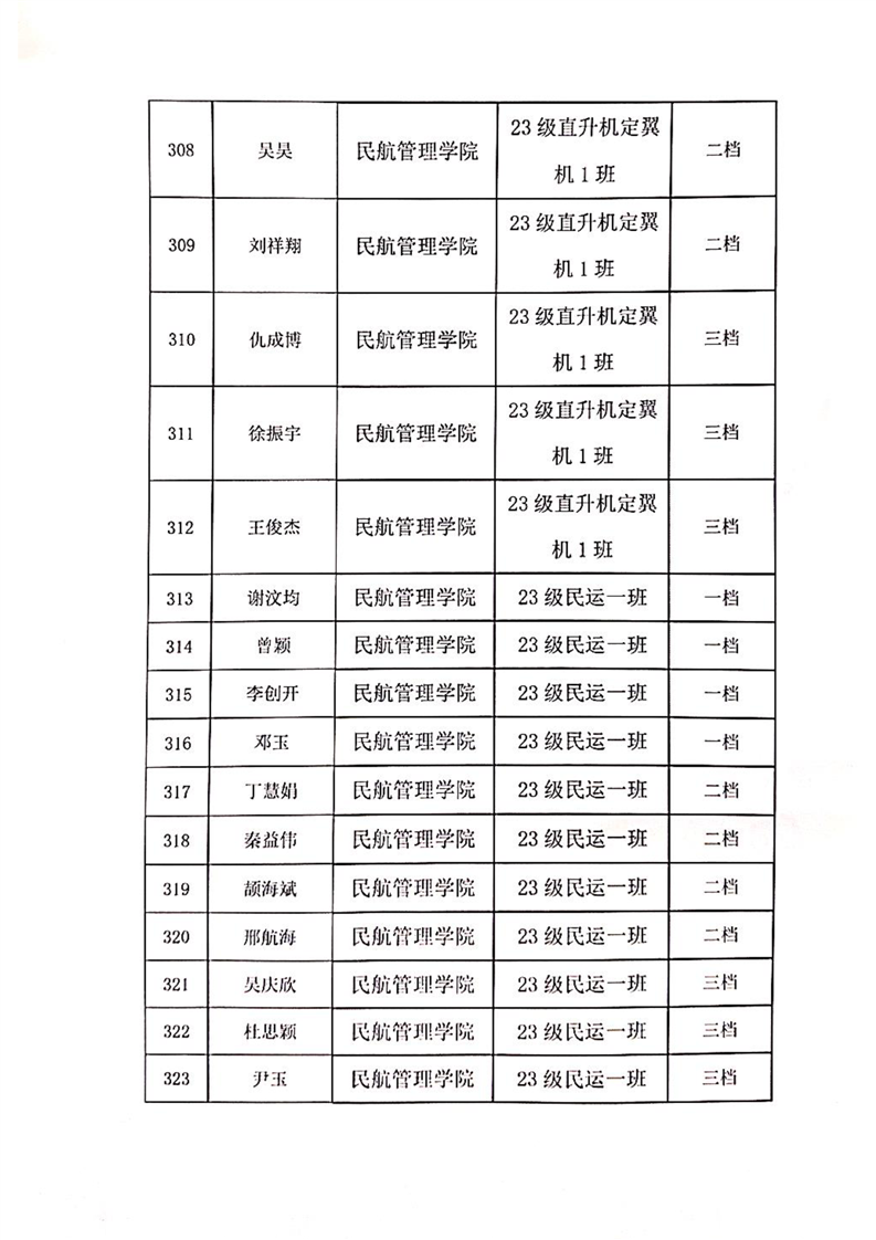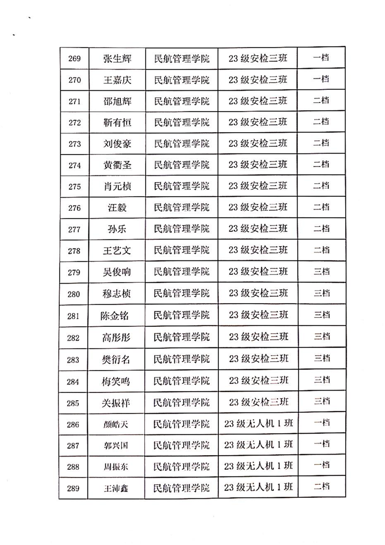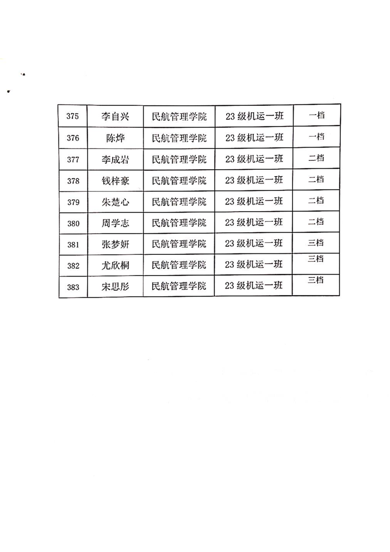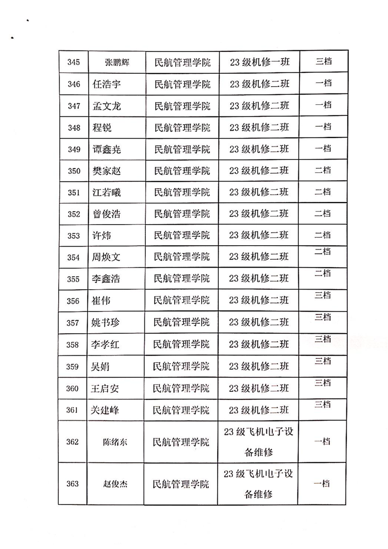 民航管理学院关于2023-2024学年度国家助学金拟获学生名单的公示