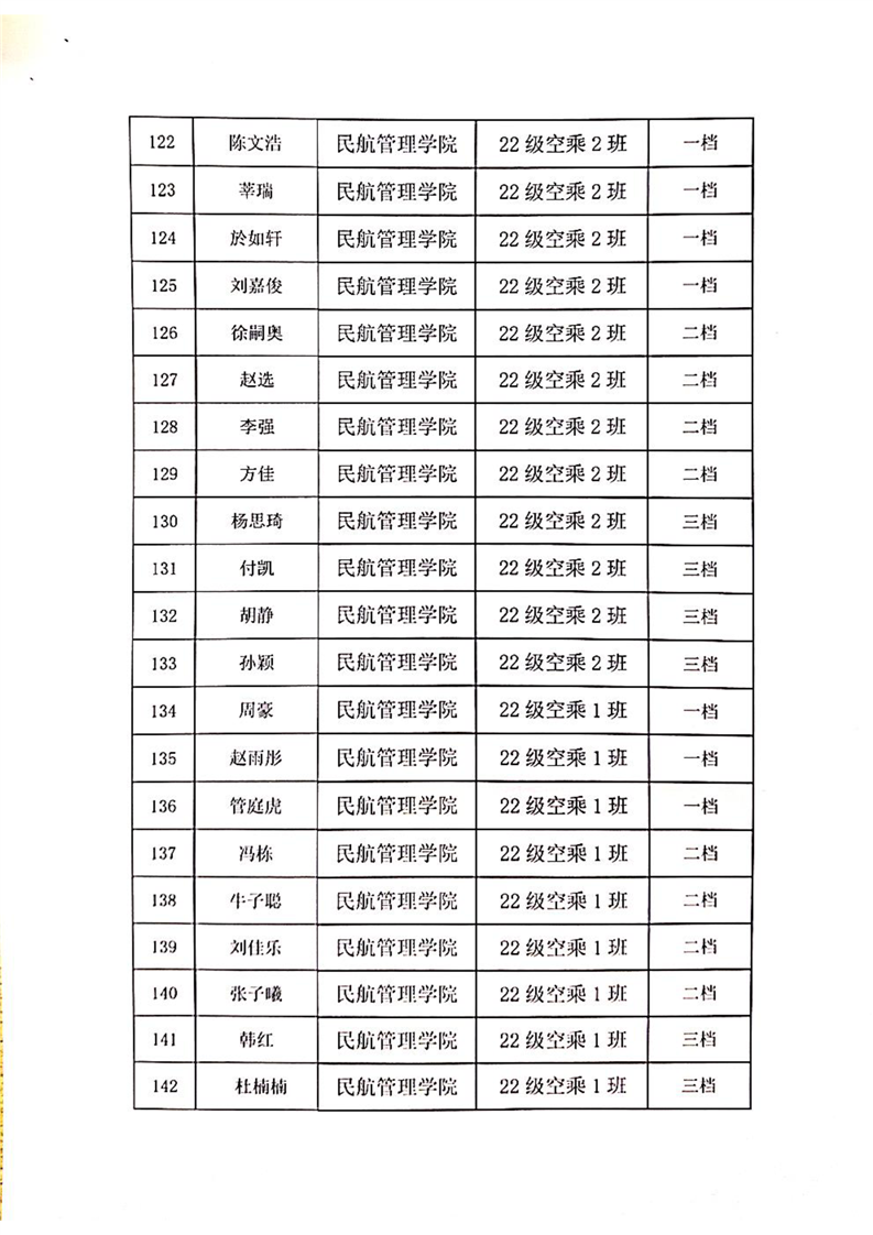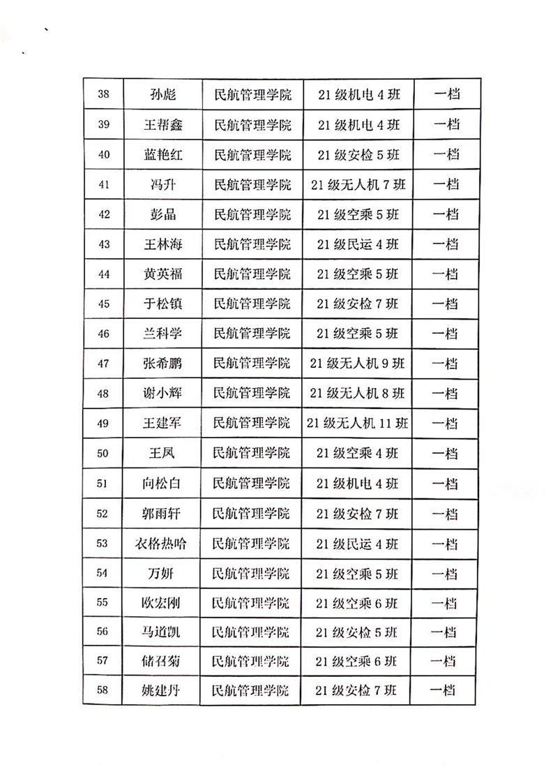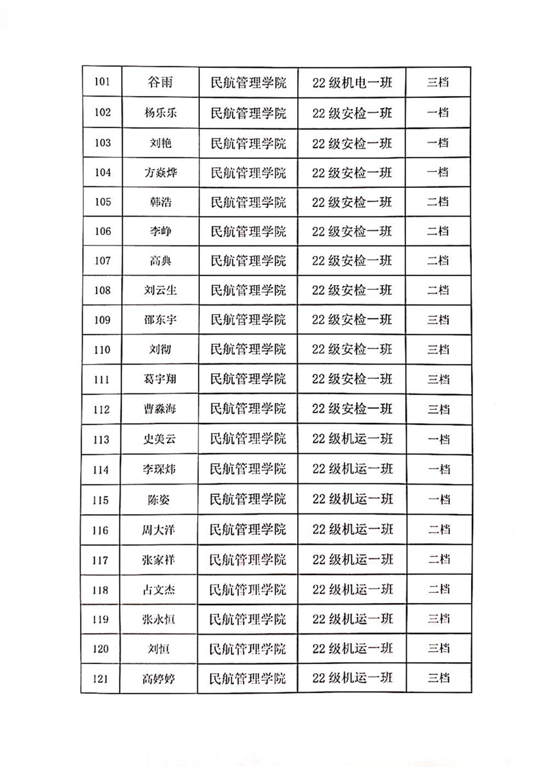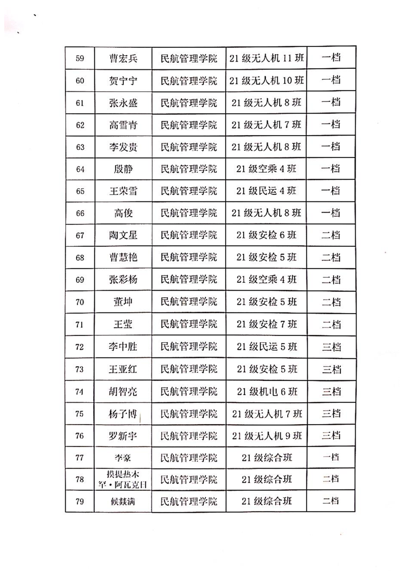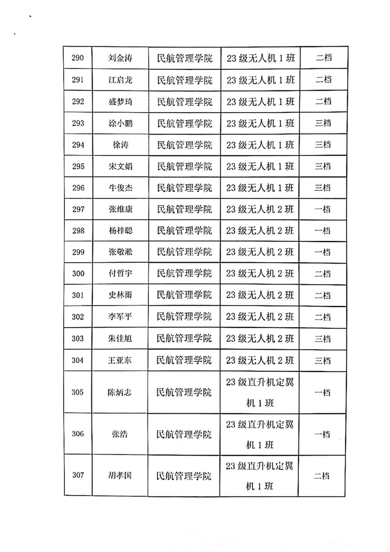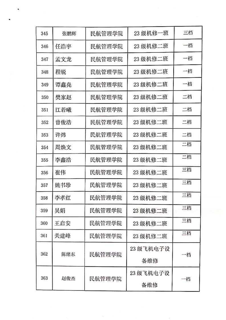 民航管理学院关于2023-2024学年度国家助学金拟获学生名单的公示