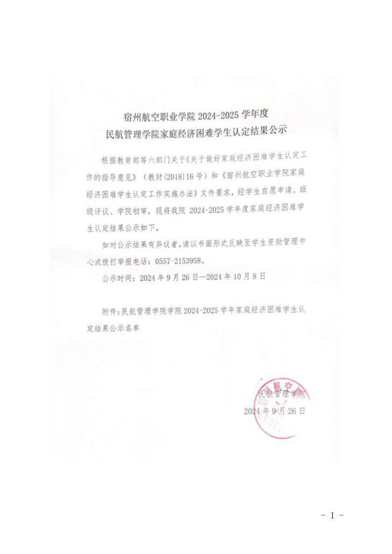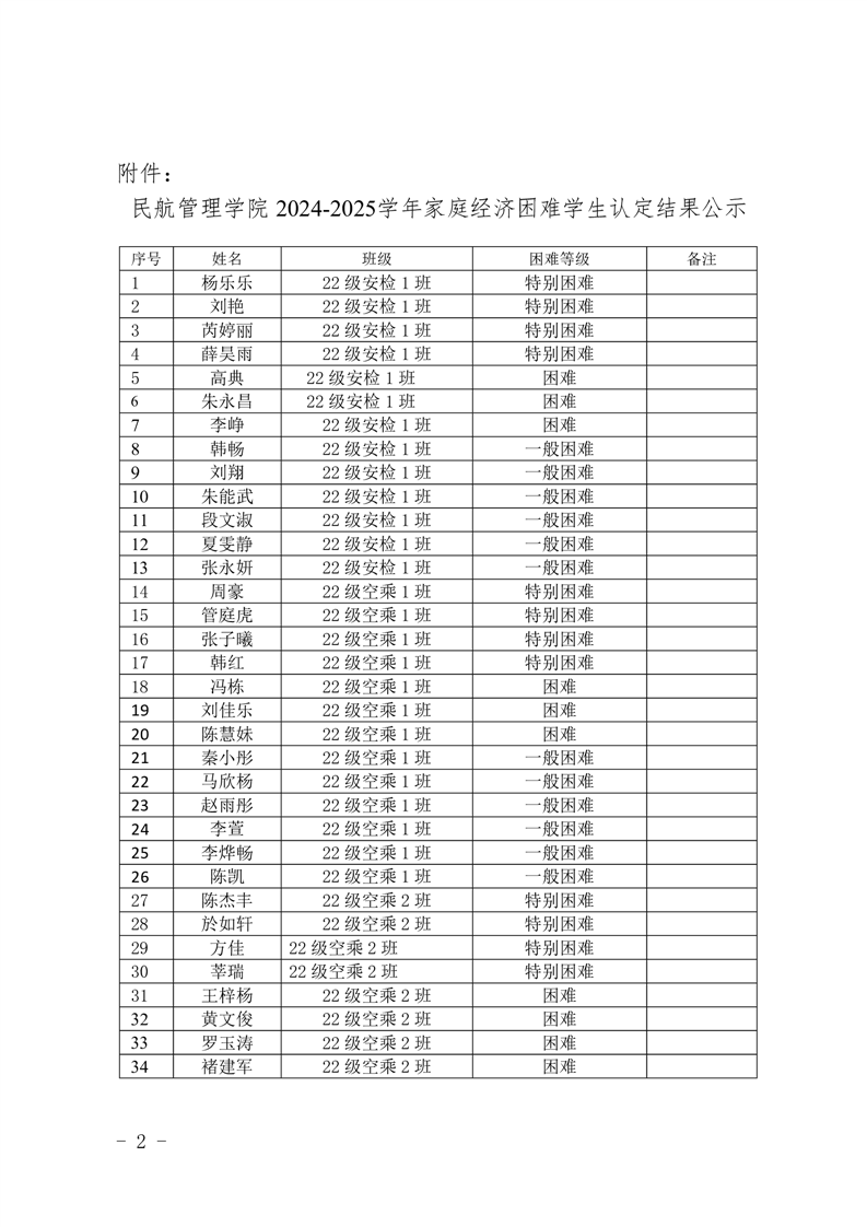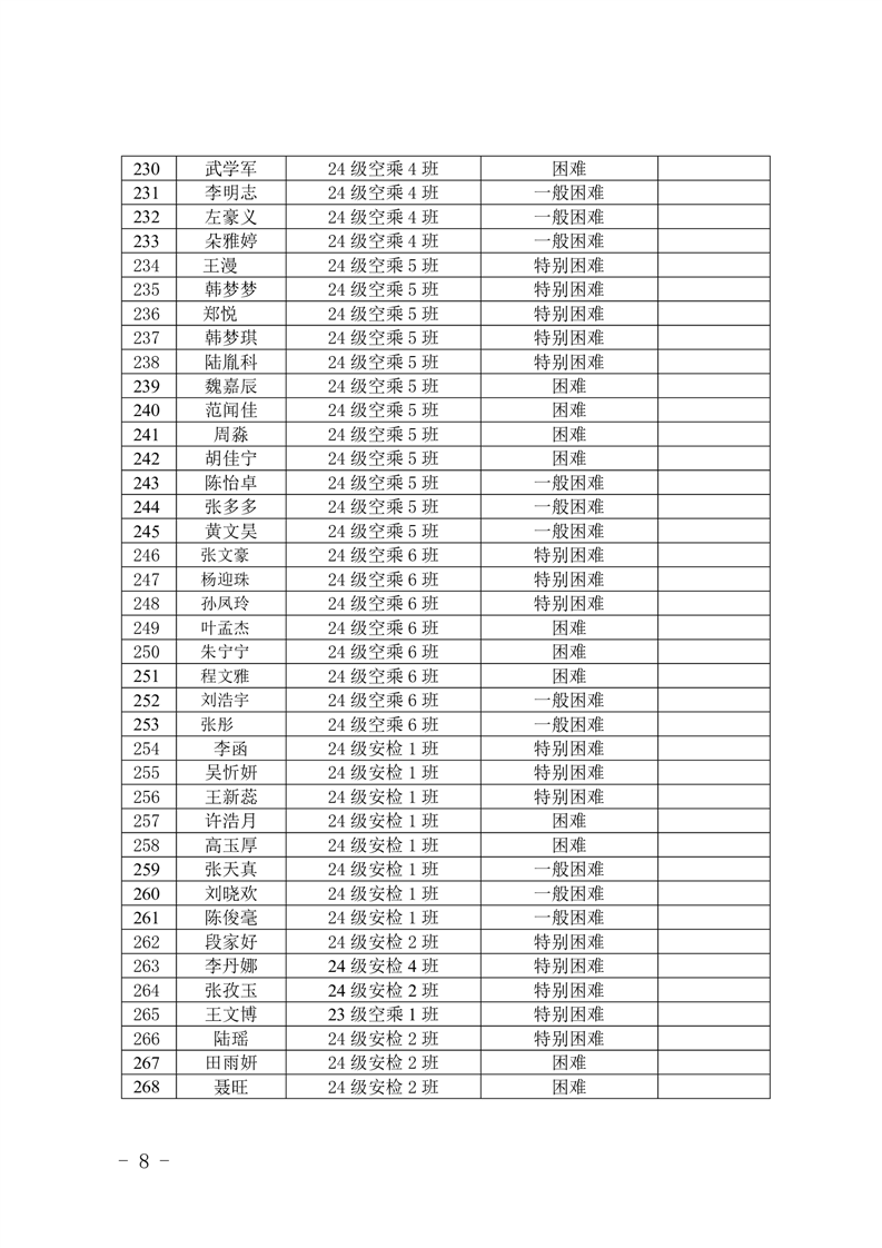 2024-2025学年度民航管理学院家庭经济困难学生认定结果公示