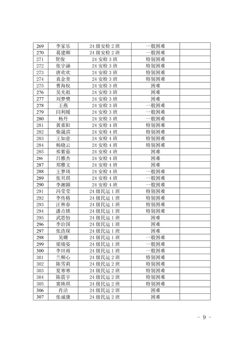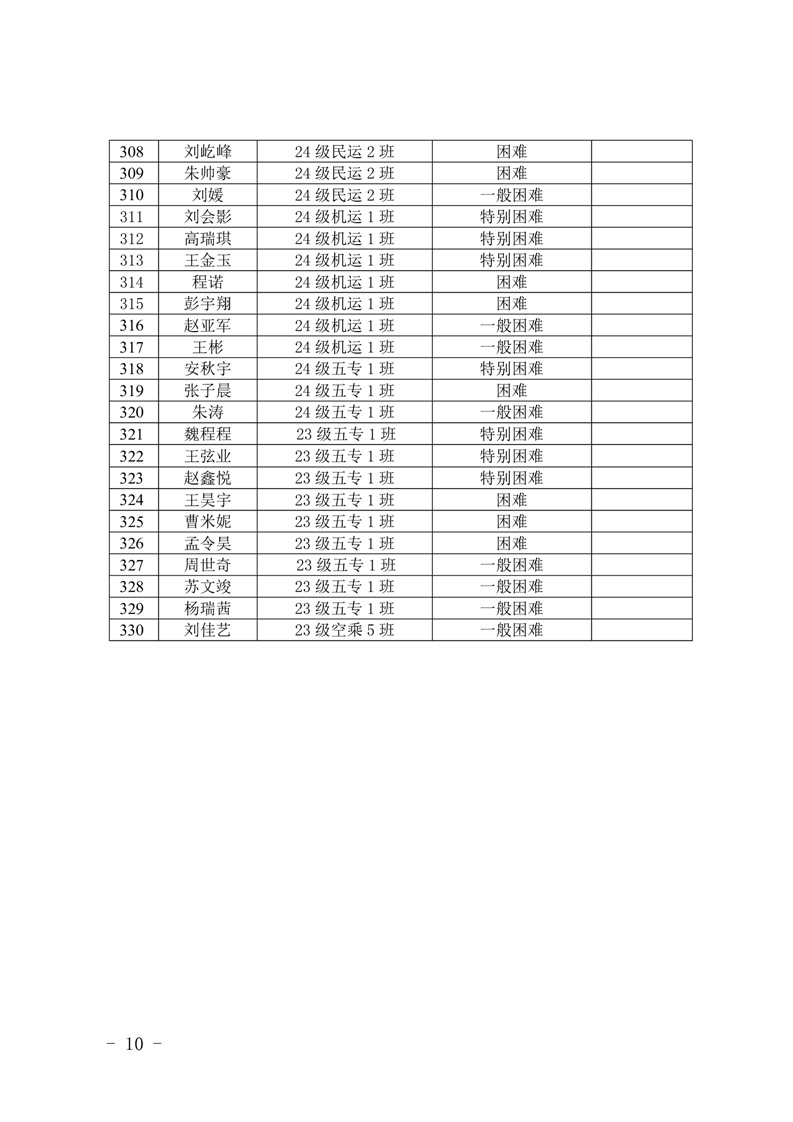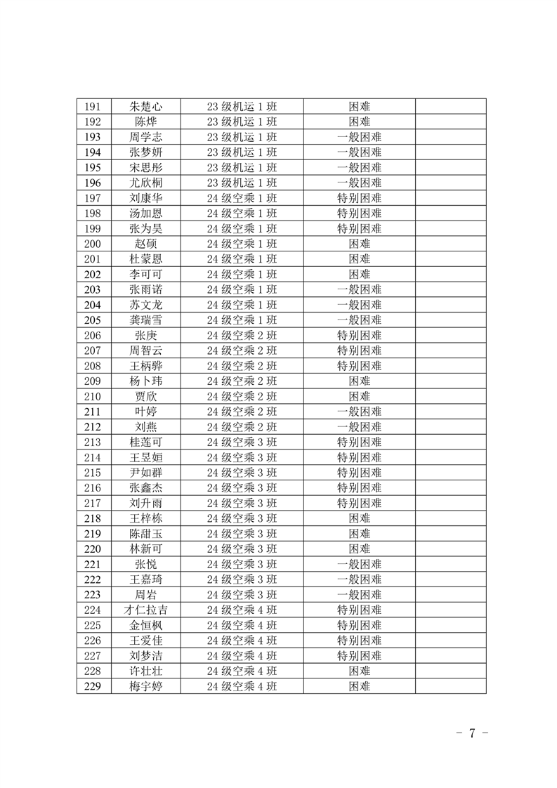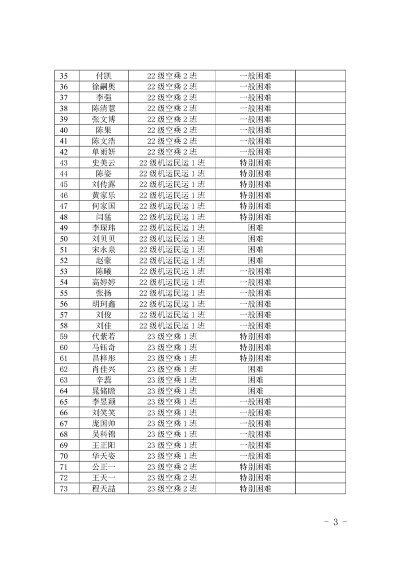 2024-2025学年度民航管理学院家庭经济困难学生认定结果公示