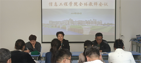 2024年5月9日中午13点🛋,信息工程学院在就业楼104召开信工学院全体教师会议。会议由院长王新桥主持🛂,副院长高贵珍出席并发表讲话,全体教师准时参会♻。