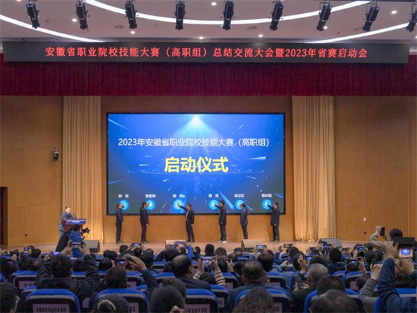 大会现场,各位领导共同按下按钮🚃,标志着“2023年安徽省职业院校技能大赛(高职组)”正式启动🌠。
