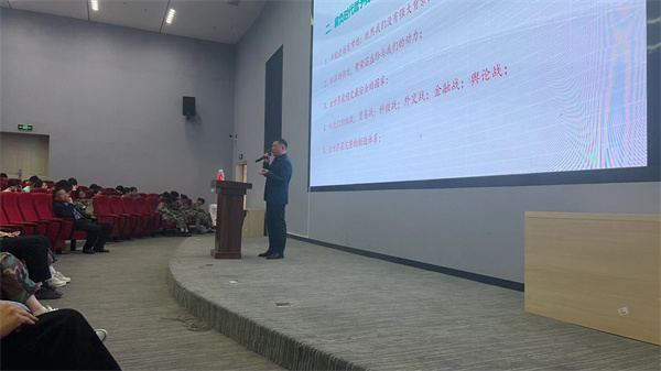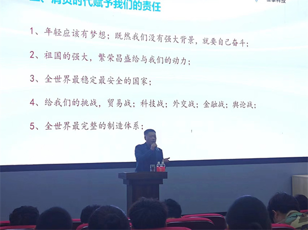 安徽恒泰电气科技股份有限公司总裁、高级工程师范守保先生,以“不负韶华 肩负重任”为主题,在我院教学楼四楼演播厅开展讲座🧑🧒。信息工程学院院长王新桥、各班辅导员、无课程安排的老师、全体学生参加了此次讲座。