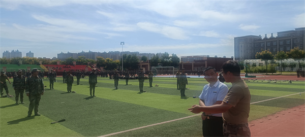 院领导检查新生军训情况,交流训练心得