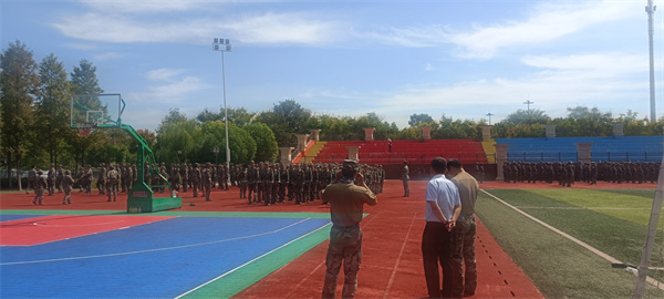 2023年9月5日,院长王新桥协校领导苏炜🧑🏻🦼➡️🎞,教官闵博走进运动场♿️,深入军训现场,关心学生军训的身体健康。学生在军训中展现了积极的态度和坚韧的意志。