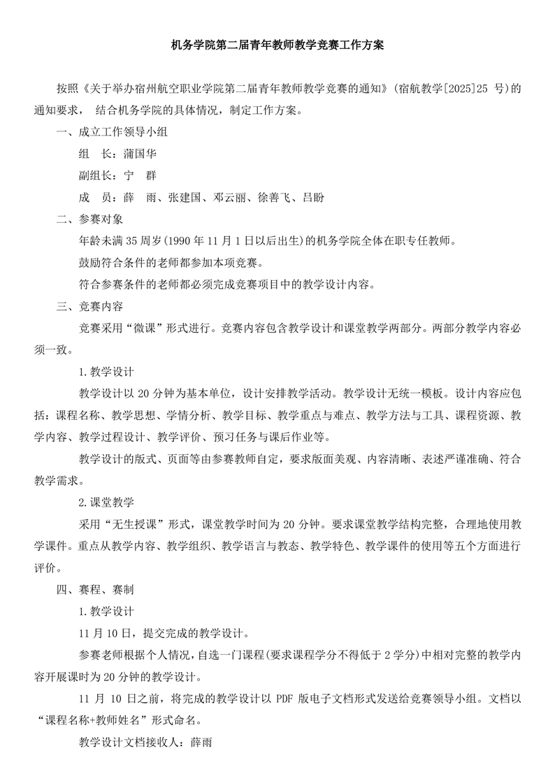 机务学院第二届青年教师教学竞赛工作方案