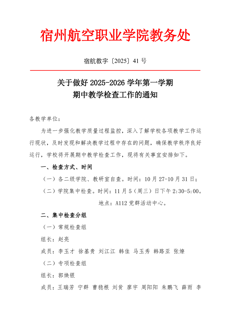 关于做好2025-2026 学年第一学期期中教学检查工作的通知