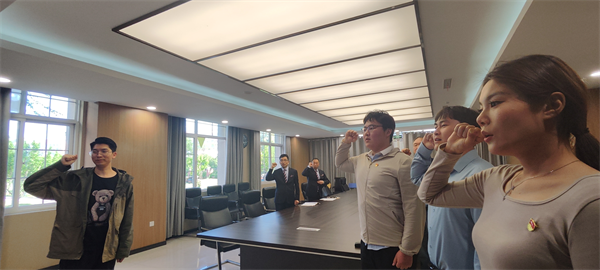 宣誓仪式在雄伟的国歌声中拉开序幕🧚🏼♂️。蒲国华同志首先强调了举行预备党员入党宣誓仪式的重要意义,接着为预备党员佩戴党徽,送上《中国共产党章程》🏂🏽。全体党员面向鲜红的党旗庄严宣誓👨🏿🦳。激昂的宣誓声传递着党员们昂然向上的斗志和为共产主义事业奋斗终身的决心!