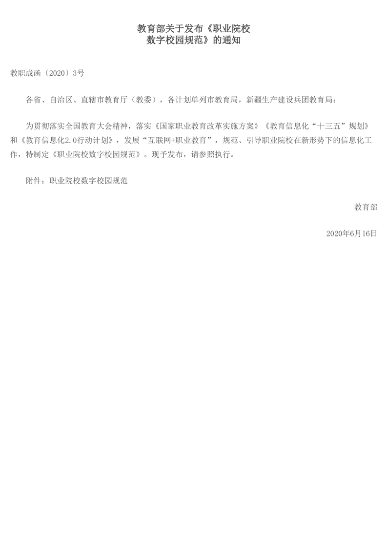 教育部关于发布《职业院校数字校园规范》的通知