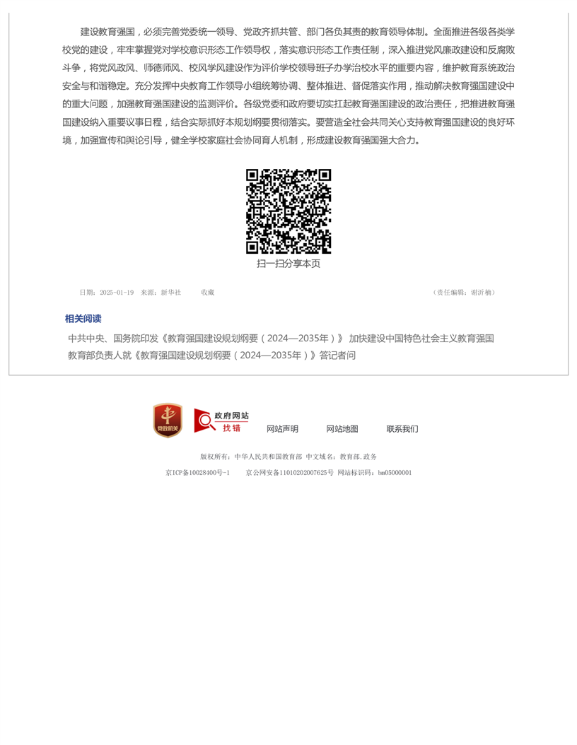 中共中央 国务院印发《教育强国建设规划纲要(2024—2035年)》