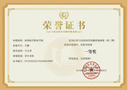 多项赛事均面向全国高校学生,覆盖词汇🚣🏽♂️、写作、翻译、综合能力等多个维度🏬,竞争激烈、含金量高。自报名启动以来🕒⚅,同学们踊跃参与♊️,在教师的带领下系统备赛,充分利用暑期时间强化训练、提升英语综合应用能力与学术素养⛪️。最终🤹🏼,在多项目比赛中,我院学子均取得优异成绩,充分彰显了宿航学子扎实的英语基础📏、优良的学科素养和奋发向上的精神风貌👅🆓。