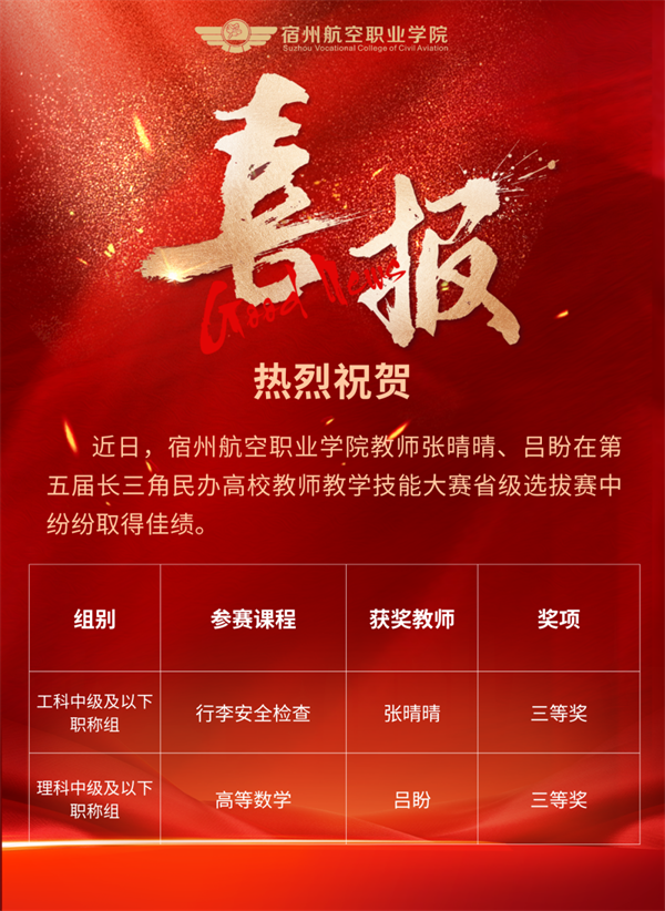 喜报🧚🏽♂️!宿航教师在长三角民办高校教学技能大赛中斩获佳绩